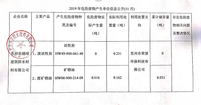 2019年11月份轉移后危廢物產生信息公告